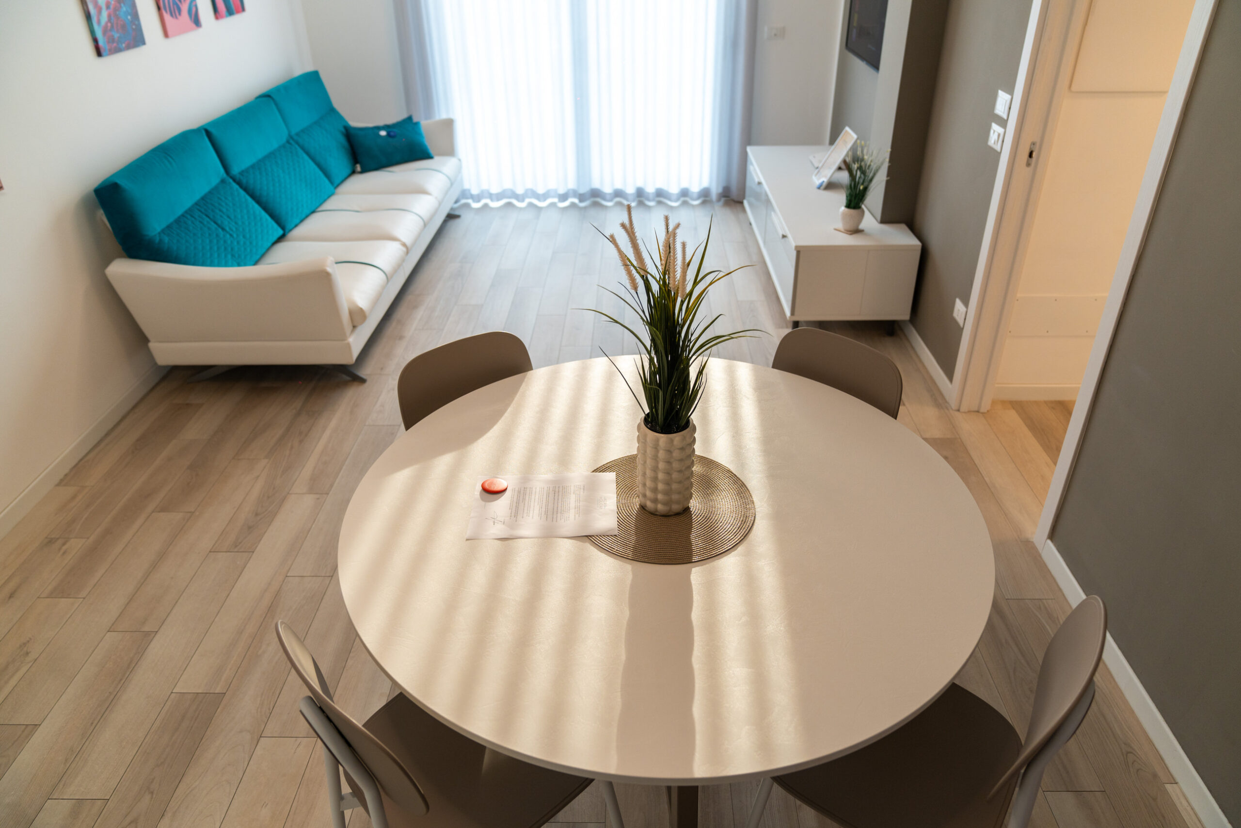 Appartamento al piano terra del più piccolo dei due palazzi che compongono il Residence Sun Beach con piscina, composto da sole 5 unità e situato in via Modugno, a pochi passi da piazza Brescia.